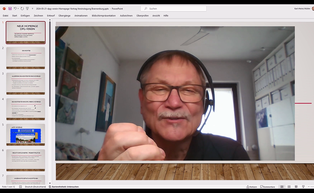 Über das Ergebnis der Arbeitsgruppe „Homepage“ und den aktuellen Sachstand berichtete uns Karl Heinz Müller, der gemeinsam mit Jochen Schuk den Aufbau, die Gestaltung und die Pflege dieser Internetseiten verantwortlich erledigt.